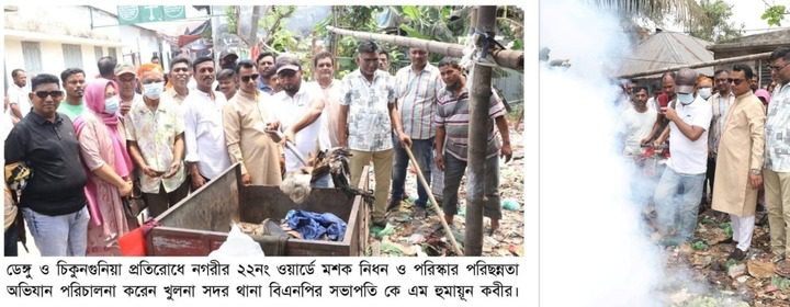 সাম্প্রতিক সময়ের বিভিন্ন কার্যক্রমে দেখা গেছে, বর্ষা মৌসুমে ডেঙ্গু প্রতিরোধে খুলনা সিটি কর্পোরেশনের পাশাপাশি রাজনৈতিক দলের নেতাকর্মীরাও মাঠপর্যায়ে কাজ করছেন। মশক নিধন ও পরিবেশ পরিচ্ছন্নতার মাধ্যমে এলাকাবাসীর মধ্যে সচেতনতা বাড়ানোর চেষ্টা করা হচ্ছে।