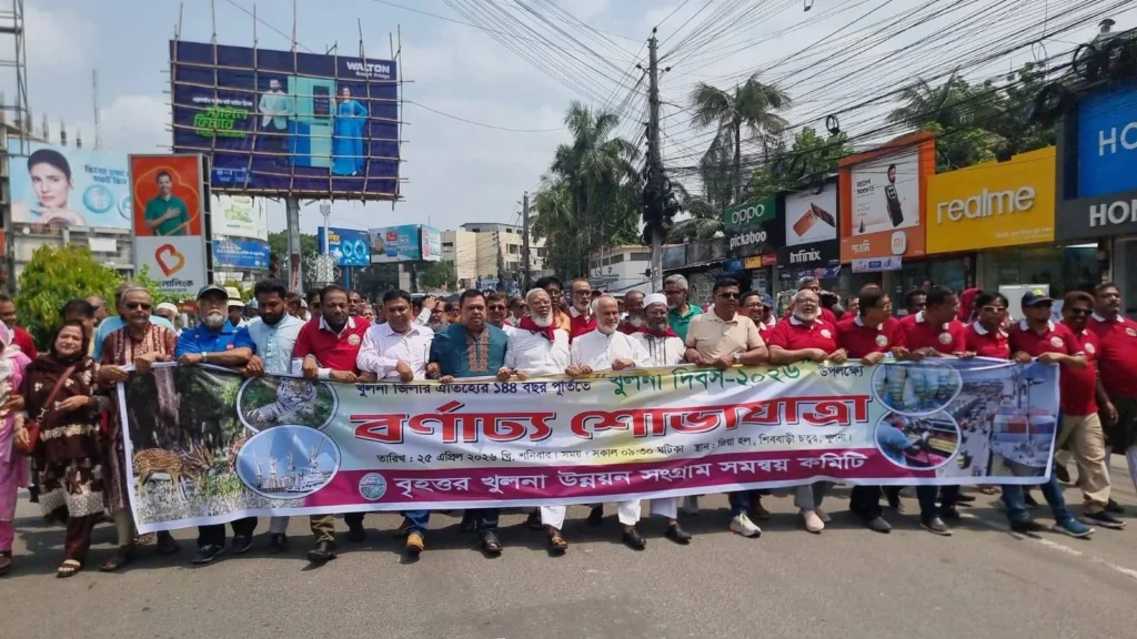 খুলনা দিবস ২০২৬ উপলক্ষে ১৪৪ বছরের গৌরবময় ইতিহাস উদযাপন করছে দক্ষিণাঞ্চলের গুরুত্বপূর্ণ এই জনপদ। ১৮৮২ সালের ২৫ এপ্রিল যশোর জেলা থেকে পৃথক হয়ে একটি নতুন জেলা হিসেবে আত্মপ্রকাশ করেছিল খুলনা। আজ ২০২৬ সালে এসে সেই পথচলার ১৪৪ বছর পূর্ণ হয়েছে। বর্ণাঢ্য শোভাযাত্রা ও মানুষের স্বতঃস্ফূর্ত অংশগ্রহণ প্রমাণ করে খুলনার প্রতি মানুষের গভীর ভালোবাসা।